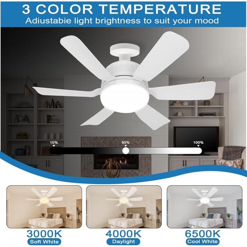 مزودة بـ ثلاث سرعات مروحة قابلة للتعديل، تتيح لك مروحة SAUGLAE تخصيص تدفق الهواء وفقًا لاحتياجاتك. سواء كنت ترغب في نسيم لطيف أو دوران قوي، فإن هذه المروحة متعددة الاستخدامات تلبي احتياجاتك. بالإضافة إلى ذلك، تقدم ثلاث خيارات لدرجة حرارة اللون: ضوء أبيض دافئ، محايد، وبارد. يمكنك بسهولة ضبط السطوع لإنشاء الأجواء المثالية لأي مناسبة.