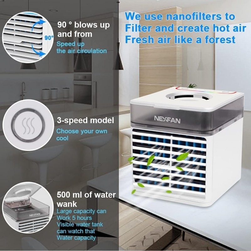 اكتشف Elitlife Mini climatiseur, climatiseurs mobiles 4 en 1 USB refroidisseur d'air avec refroidissement à eau, climatiseur. يوفر هذا المكيف الهوائي المدمج تبريدًا فعالًا مع نظام تبريد بالماء وثلاثة إعدادات سرعة قابلة للتعديل. مثالي للاستخدام الشخصي في أي مساحة، فهو موفر للطاقة وسهل الحمل، مما يجعله خيارًا مثاليًا للراحة أثناء التنقل.
