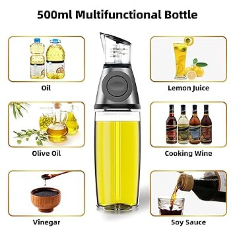عزز مطبخك مع هذه الزجاجة متعددة الوظائف سعة 500 مل، المثالية لتخزين وقياس السوائل المختلفة مثل الزيت، الخل، وأكثر.