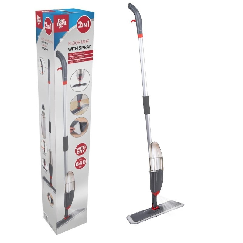 نظف أرضياتك بسهولة مع ممسحة ديرت ديفل 2 في 1 التي تتميز بوظيفة بخاخ مريحة. مصممة للتنظيف الرطب والجاف، تجعل الحفاظ على الأرضيات النظيفة أمرًا سهلاً.