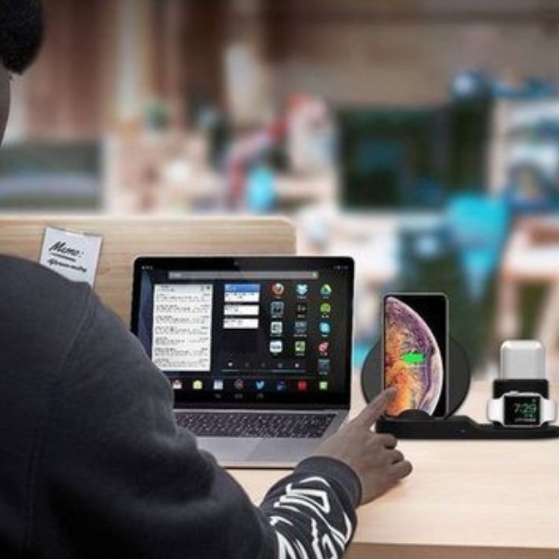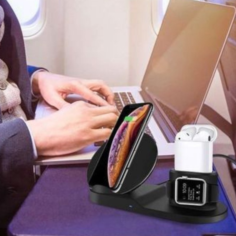 اشحن هاتفك الذكي وساعتك الذكية وسماعات الأذن بسهولة في وقت واحد مع هذه المحطة الأنيقة للشحن اللاسلكي.