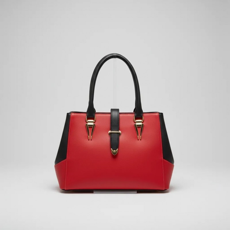 حقيبة يد أنيقة باللونين الأحمر والأسود