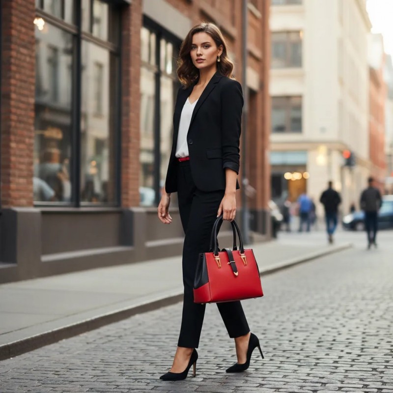 أضف لمسة من الأناقة إلى مظهرك مع هذه الحقيبة الأنيقة باللونين الأحمر والأسود. مثالية للخروج غير الرسمي والفعاليات الرسمية.