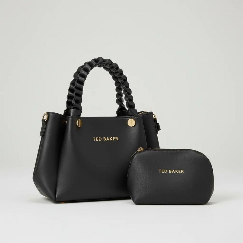 طقم حقيبة يد سوداء أنيقة مثالي لأي مناسبة.