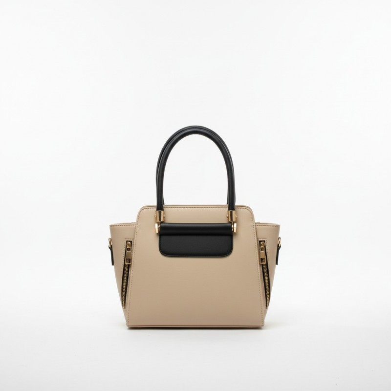 تجمع هذه الحقيبة الأنيقة بين التصميم الكلاسيكي واللمسة العصرية، حيث تتميز بواجهة جلدية رائعة ذات لونين تكمل أي زي بكل سهولة. توفر المساحة الداخلية الواسعة مكانًا كافيًا لجميع احتياجاتك، بينما تضمن المقابض العلوية المتينة حملًا مريحًا. تضيف الأجزاء المعدنية بلون الذهب لمسة من الفخامة، مما يجعل هذه الحقيبة إكسسوارًا متعدد الاستخدامات لكل من النهار والليل. مثالية للأشخاص المولعين بالموضة الذين يبحثون عن كل من الوظائف والأناقة.