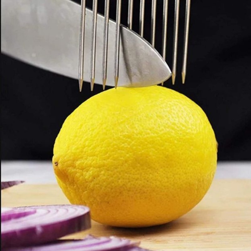 تم تصميم قاطع البصل من الفولاذ المقاوم للصدأ لجعل تقطيع البصل والخضروات الأخرى سهلاً للغاية. تمسك الأسنان الحادة بالبصل بثبات أثناء التقطيع، مما يضمن قطعًا متساويًا ويحمي أصابعك. مثالي للطهاة المنزليين وعشاق الطهي.