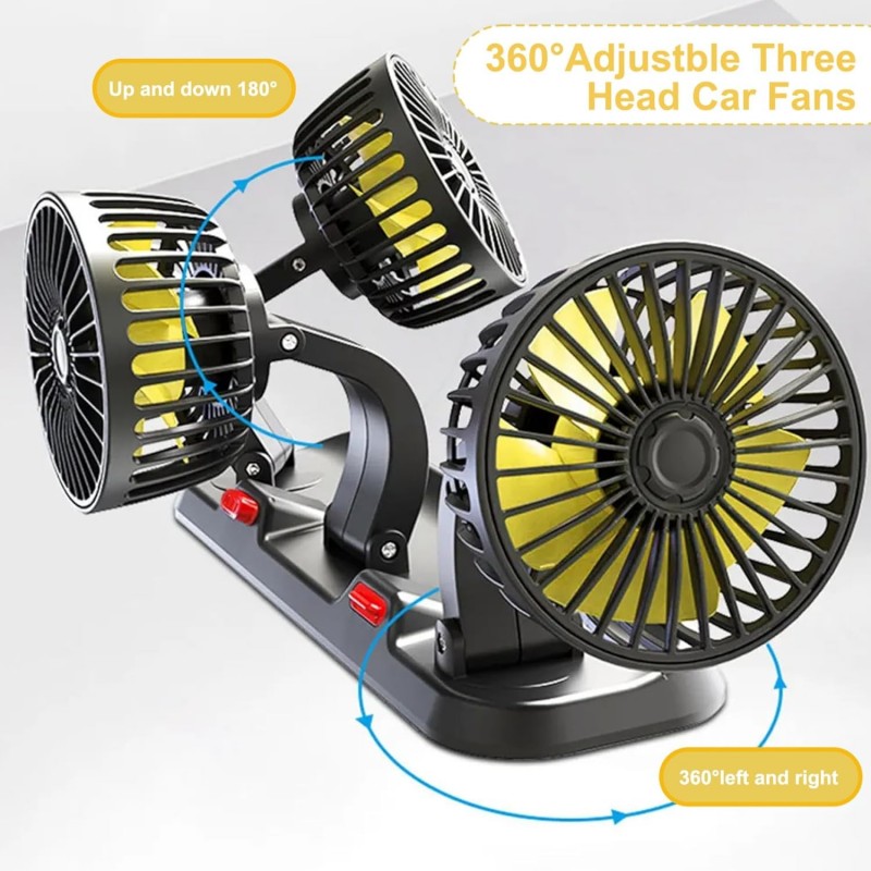 The sleek and modern design features three adjustable fan heads, allowing you to direct air precisely where you need it. With two speed settings, you can easily customize the airflow intensity to suit your comfort level. Whether you're facing a hot summer day or just need some fresh air during your commute, this fan has got you covered.