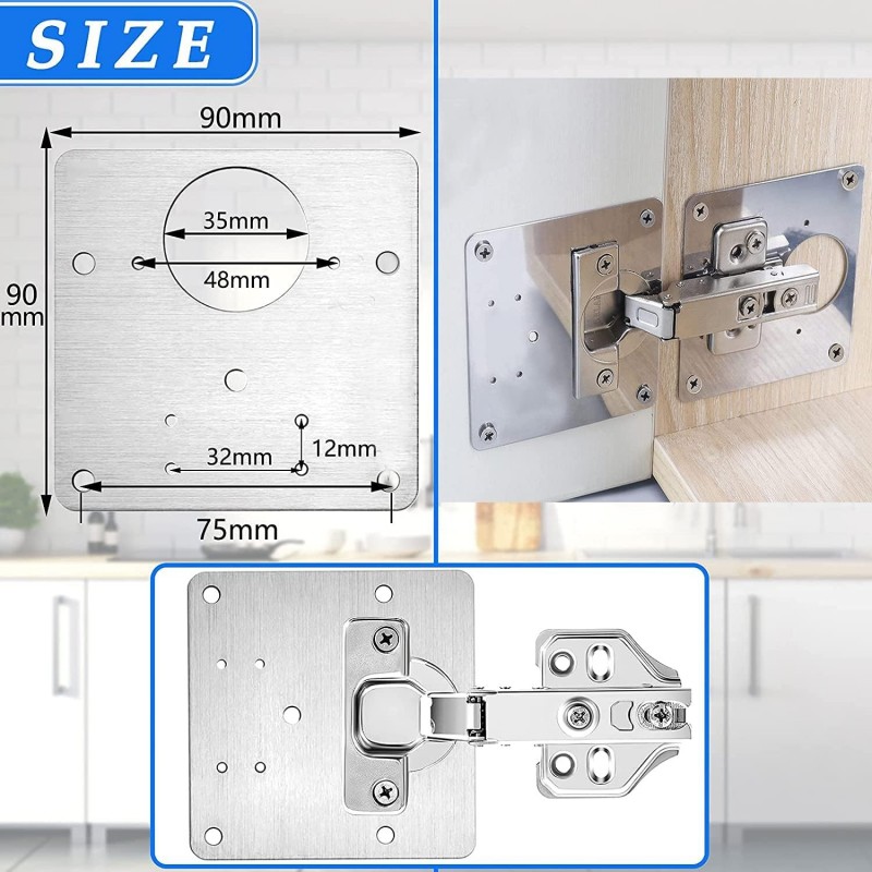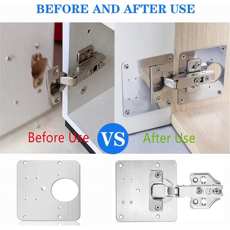 Installation is straightforward, thanks to multiple pre-drilled holes on each plate that allow for easy mounting. Whether you need repairs for the hinge cup hole or the base hole, this kit provides clear visual instructions alongside illustrative graphics, making it accessible even for those with basic handyman skills.