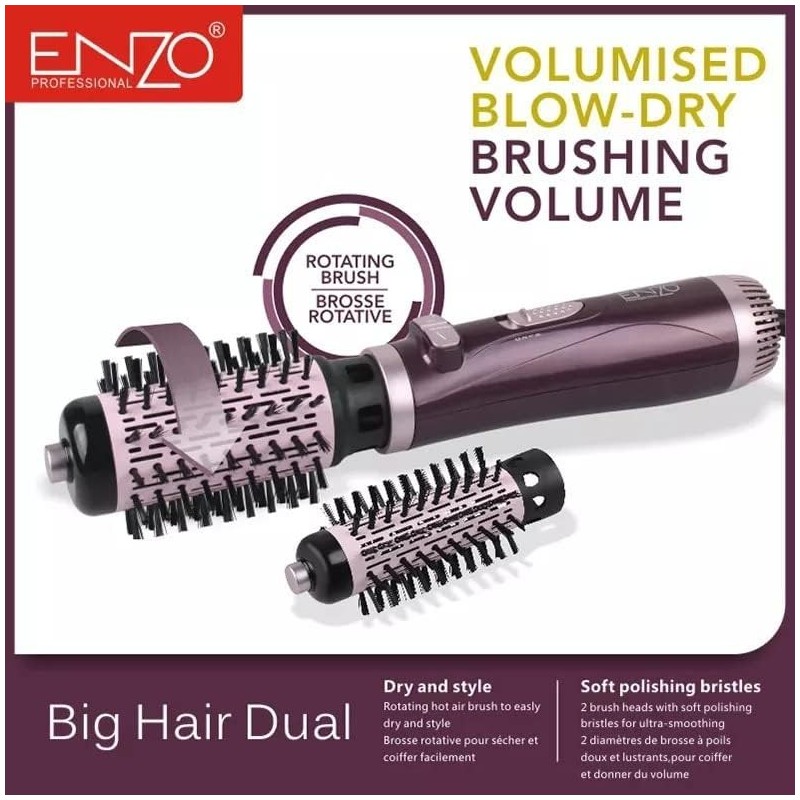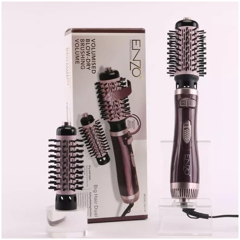 Introducing the ENZO New 2 In 1 Hair Dryer Hot Air Spin Brush Styling Interchangeable Brush Heads Ionic Hair Curler Comb -1000W, your ultimate solution for effortless hair styling. This innovative tool combines the power of a hair dryer and a hot air brush, allowing you to dry and style your hair simultaneously, saving you precious time in your daily routine.