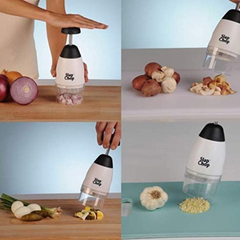 Effortlessly chop and dice your favorite ingredients with the Slap Chop, a versatile kitchen tool designed for convenience and speed.