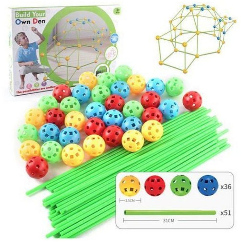 The Build Your Own Den Construction Set is perfect for sparking imagination and developing problem-solving skills in children. With colorful rods and connectors, kids can create endless structures such as forts, rocket ships, or castles. The set is easy to assemble and disassemble, making it perfect for indoor and outdoor play.