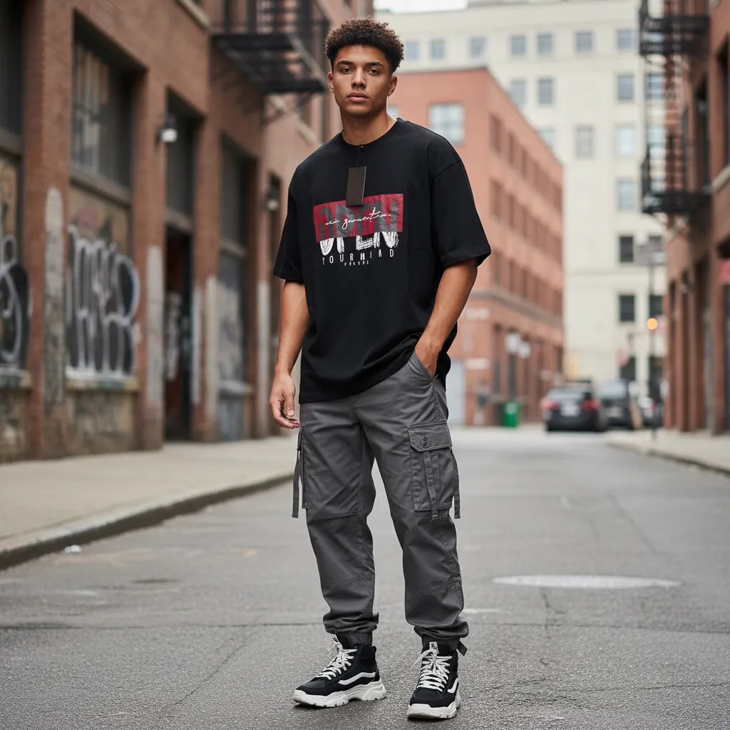 This casual urban style graphic t-shirt is designed for those who appreciate comfort and fashion. Made from high-quality materials, it features a bold graphic print that stands out in any crowd. Ideal for daily wear or casual outings, this t-shirt pairs perfectly with jeans or cargo pants.
