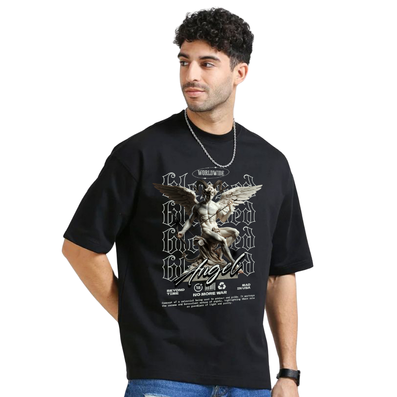 Discover our striking Graphic T-Shirt, crafted from a comfortable cotton blend. This black tee features an eye-catching winged figure design, embodying themes of peace and universality. With its relaxed fit and unique artwork, it’s perfect for casual outings or layering. Elevate your streetwear collection with this expressive piece that tells a story.