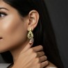 Ces magnifiques boucles d'oreilles plaquées or sont conçues avec des détails en filigrane complexes et ornées de pierres précieuses rouges vibrantes. Conçues pour l'élégance et la sophistication, elles offrent un look luxueux parfait pour les occasions spéciales ou pour rehausser une tenue quotidienne. Les boucles d'oreilles sont légères, garantissant un confort tout en faisant une déclaration de mode audacieuse. Associez-les à votre robe préférée ou à votre ensemble de soirée pour un look vraiment inoubliable.
