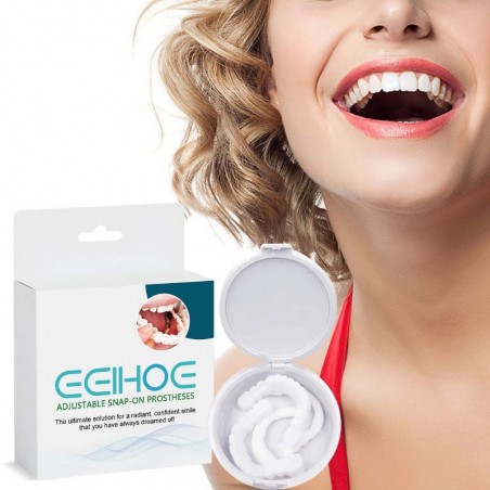 Élevez votre confiance en vous avec nos Prothèses Snap-On Ajustables, la solution ultime pour obtenir le sourire parfait sans effort. Conçues pour s'adapter confortablement à vos dents existantes, ces prothèses offrent un look naturel et beau sans avoir besoin de visites chez le dentiste. Idéales pour des occasions spéciales ou un usage quotidien, elles sont faciles à utiliser, durables et peuvent être adaptées à votre structure dentaire unique. Dites adieu aux complexes et bonjour à un sourire éblouissant !
