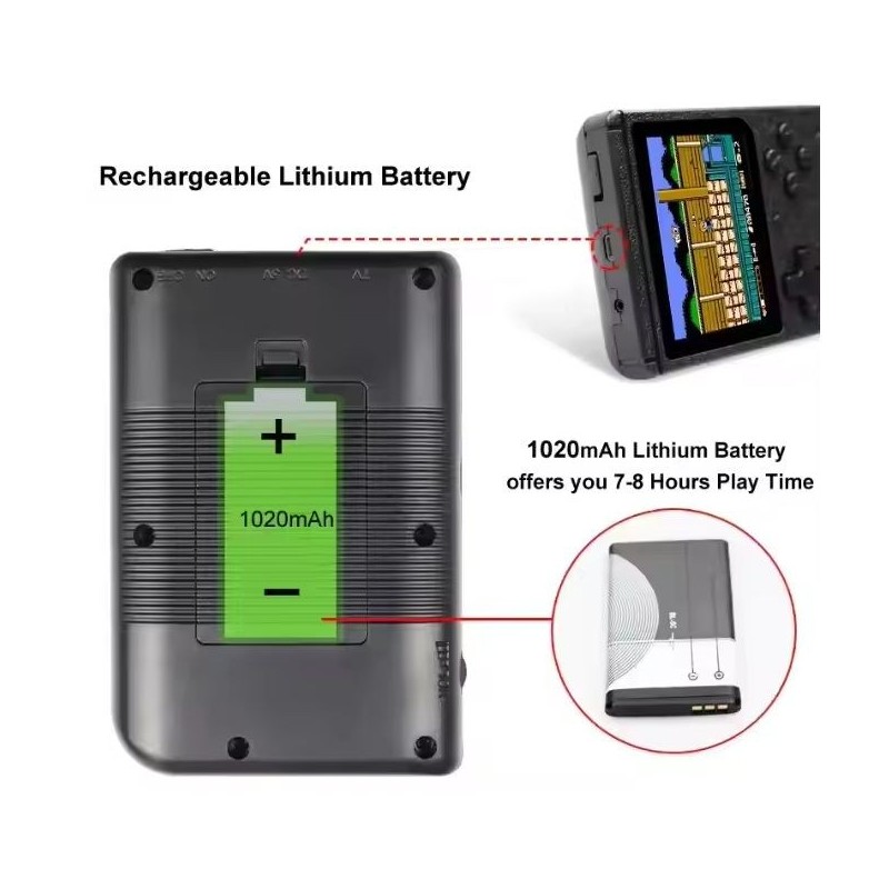Revivez la nostalgie avec cette console de jeu portable rétro compacte, dotée de jeux classiques et d'un écran vibrant.
