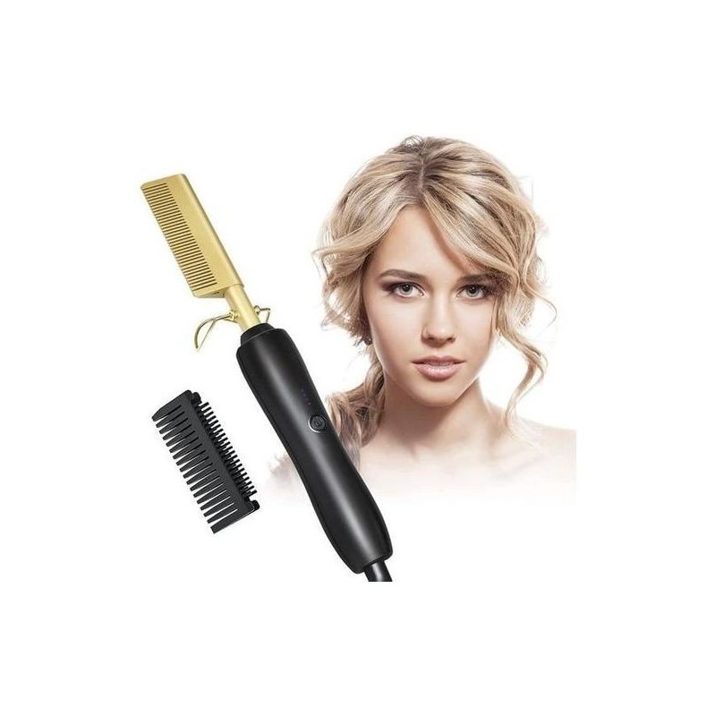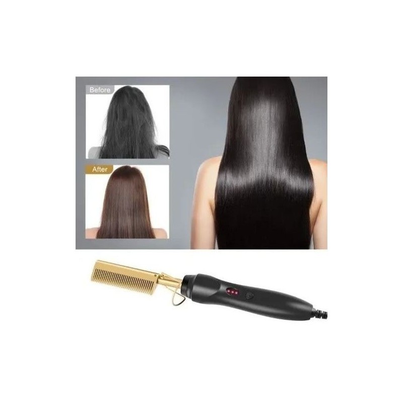 Transformez votre routine de coiffage avec le Peigne Électrique Professionnel pour Lisser les Cheveux. Doté d'une technologie de chauffage avancée, ce peigne chauffe rapidement pour offrir des résultats lisses et soyeux en quelques minutes. Son design ergonomique assure une prise en main confortable, tandis que le peigne plaqué or garantit une distribution uniforme de la chaleur pour éviter d'endommager les cheveux. Idéal pour tous les types de cheveux, cet outil de coiffage est parfait pour obtenir des mèches lisses et sans frisottis sans effort.