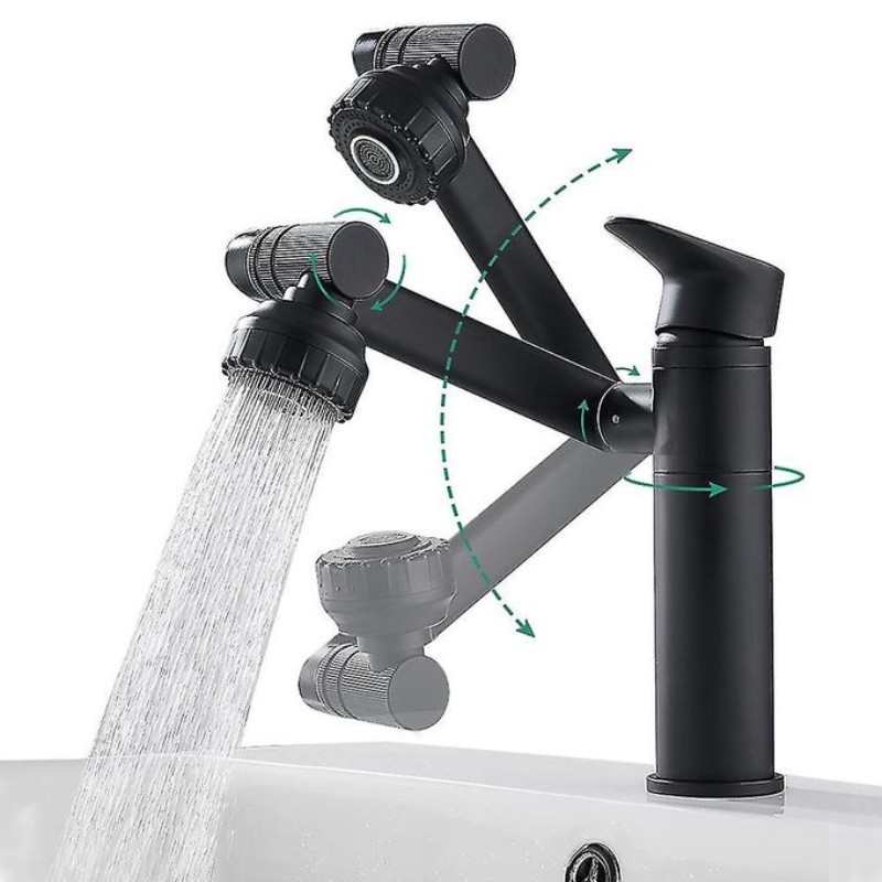 Ce robinet de salle de bain noir mat rotatif à 360° allie design contemporain et fonctionnalité pratique. Son amplitude de mouvement complète permet une utilisation pratique, que vous laviez votre visage ou nettoyiez le lavabo. Fabriqué à partir de matériaux de haute qualité, ce robinet offre durabilité et une finition durable. La finition noire mate ajoute une touche d'élégance et de sophistication à toute décoration de salle de bain.