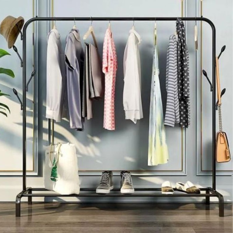 Élevez votre organisation domestique avec ce porte-vêtements en métal robuste, conçu pour supporter jusqu'à 35 kg de vêtements avec aisance. Son design minimaliste complète n'importe quel décor, tandis que l'étagère de rangement supplémentaire offre un espace suffisant pour les chaussures, les sacs ou les vêtements pliés. Parfait pour les chambres, les entrées ou les buanderies, ce porte-vêtements allie fonctionnalité et style, garantissant que vos vêtements sont soigneusement exposés et facilement accessibles.