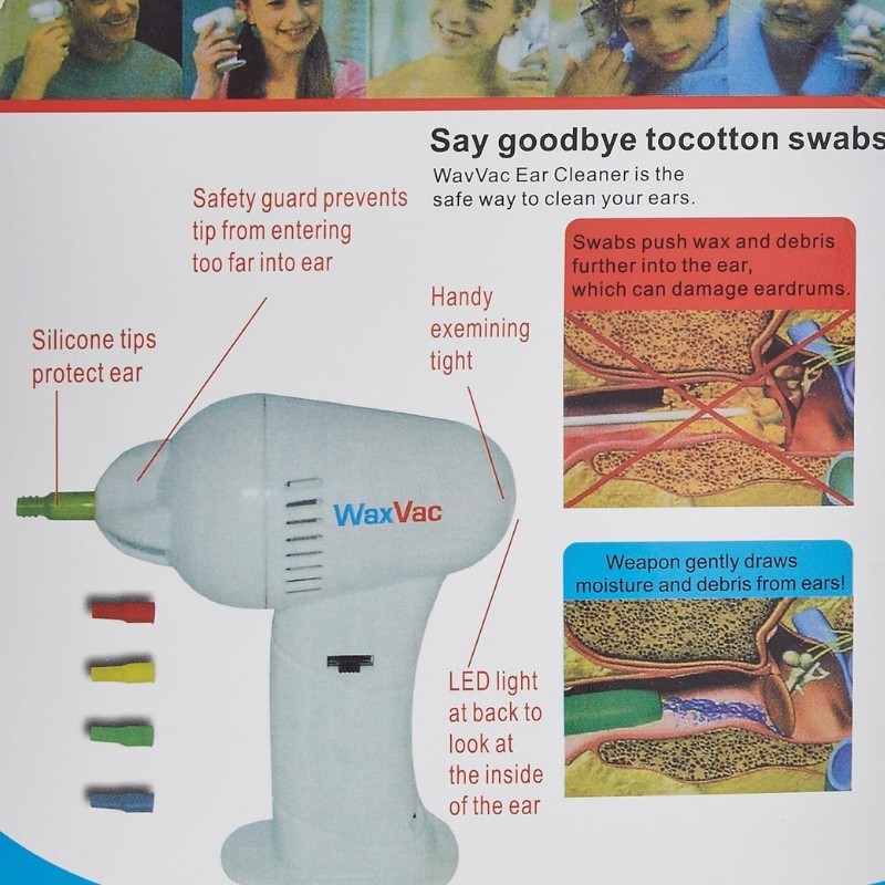 Le nettoyeur d'oreilles WaxVac offre un moyen sûr et doux de nettoyer vos oreilles. Ses embouts en silicone protègent vos oreilles tandis que l'appareil élimine en douceur l'humidité et les débris. Équipé d'un garde de sécurité pour éviter une insertion profonde et d'une lumière LED pour la visibilité, c'est une alternative parfaite aux dangereux cotons-tiges.