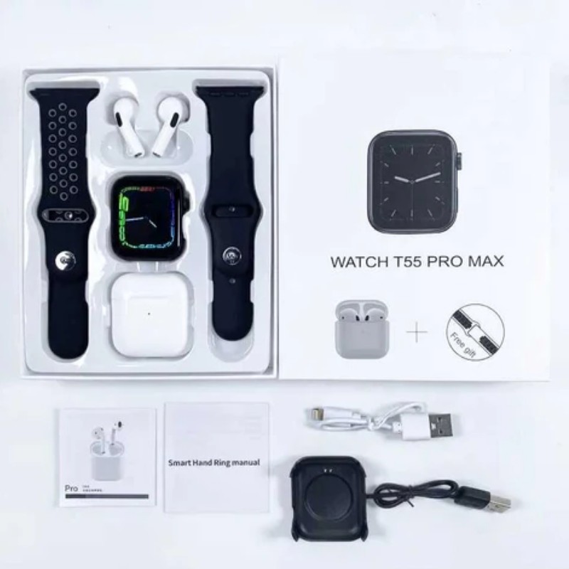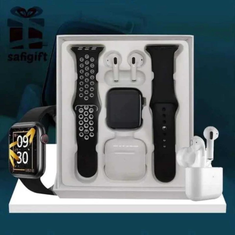 Ce set premium comprend une montre connectée à la pointe de la technologie, dotée d'un affichage vibrant et d'une interface personnalisable, ainsi que des écouteurs sans fil de haute qualité offrant un son cristallin. La montre est conçue pour vous aider à atteindre vos objectifs de fitness grâce à ses fonctionnalités de suivi avancées, tandis que les écouteurs offrent une expérience audio fluide grâce à leur design ergonomique et leur qualité sonore supérieure. Que vous fassiez de l'exercice ou que vous profitiez simplement de votre journée, ce combo offre le parfait mélange de style et de fonctionnalité.