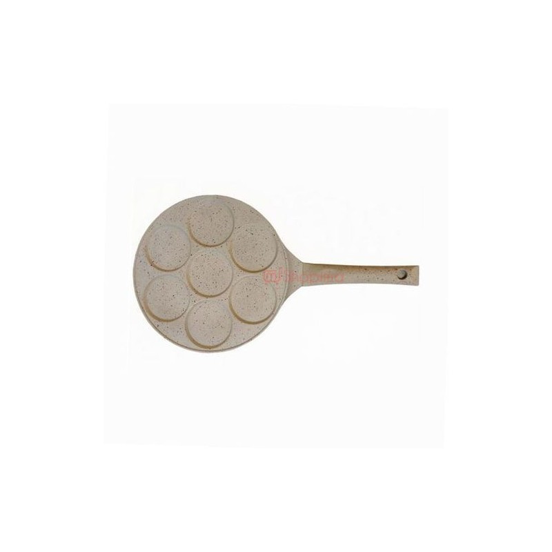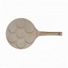 L'ustensile dispose d'une poêle ronde et plate avec sept indentations peu profondes, vous permettant de cuire plusieurs crêpes simultanément. Chaque indentation est parfaitement dimensionnée pour des crêpes standard, garantissant une cuisson uniforme et une absorption optimale des saveurs. Fabriquée à partir d'un matériau de couleur claire, possiblement antiadhésif, cette poêle garantit un démoulage facile de vos crêpes tout en favorisant un chauffage uniforme sur la surface.