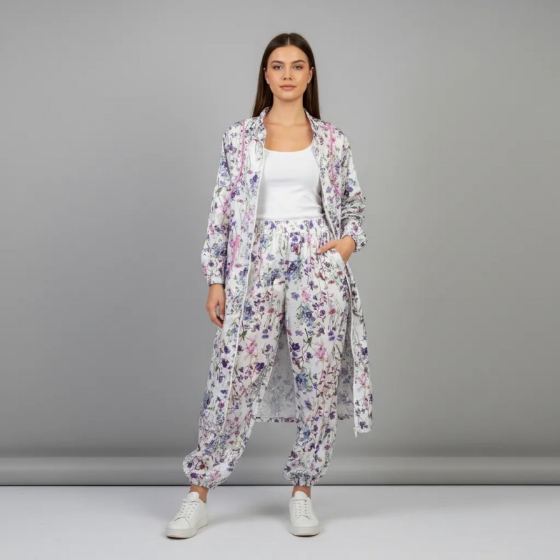 Cet ensemble de loungewear imprimé floral offre à la fois confort et style, parfait pour se détendre à la maison ou lors de sorties décontractées. Fabriqué en tissu doux et respirant, il garantit un ajustement confortable tout en ajoutant une touche d'élégance à votre garde-robe.